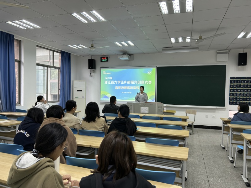 “建行裕农通杯”第八届浙江省大学生乡村振兴创意大赛省赛决赛的时间临近,为提升入选项目的水平,创新创业学院于2025年11月4日下午,在教1-201召开了乡村振兴省赛决赛项目路演专题辅导。现场,创新创业学院副院长傅许坚以指导专家的身份,对七个入围省赛决赛且主动报名要求接受指导的项目开展专题辅导。各项目指导老师、团队核心成员及创新创业学院相关人员参会。