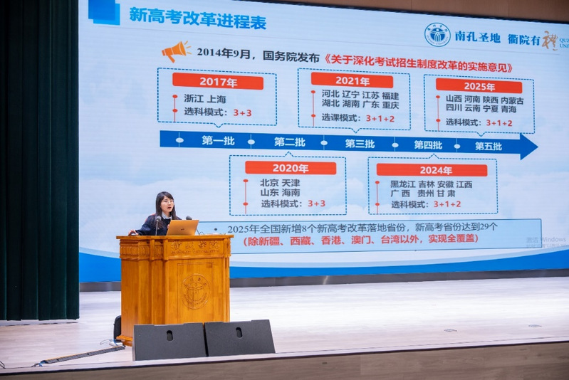 最后,创新创业学院还邀请了招生办主任柴玲欢为学生们带来了一场精彩的生涯规划讲座。柴老师结合新高考改革、三位一体招生政策等,生动讲解了高中生的多元升学路径,并与同学们积极互动。讲座深入浅出,现场气氛热烈,掌声不断。