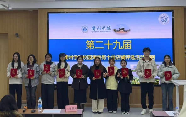评选现场,各店铺代表通过精彩的PPT展示与流畅表达,全面回顾了店铺的运营成果、特色亮点与创业心得,充分展现了衢院学子的创新思维与综合素养。