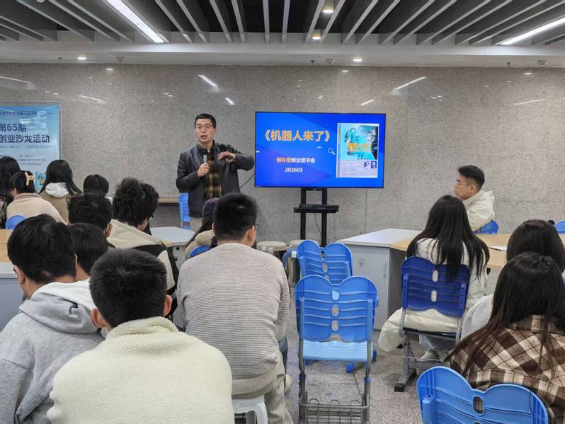 为深入回应人工智能时代对青年人才发展的全新要求,衢州学院创新创业学院将于2026年上半年,围绕“人工智能时代背景下的个人发展力”这一核心主题,精心策划并推出一系列创业读书会活动。近日,创新创业学院以“人工智能时代的人类生存法则”为主题,成功举办第65期创业沙龙读书会活动。本次活动延续“阅读赋能创新”的核心理念,通过“深度领读+案例剖析+互动共创”的多元形式,带领师生深入探讨在自动化浪潮中如何构建不可替代的个人优势,实现从“被动就业”到“主动创造”的思维跨越。