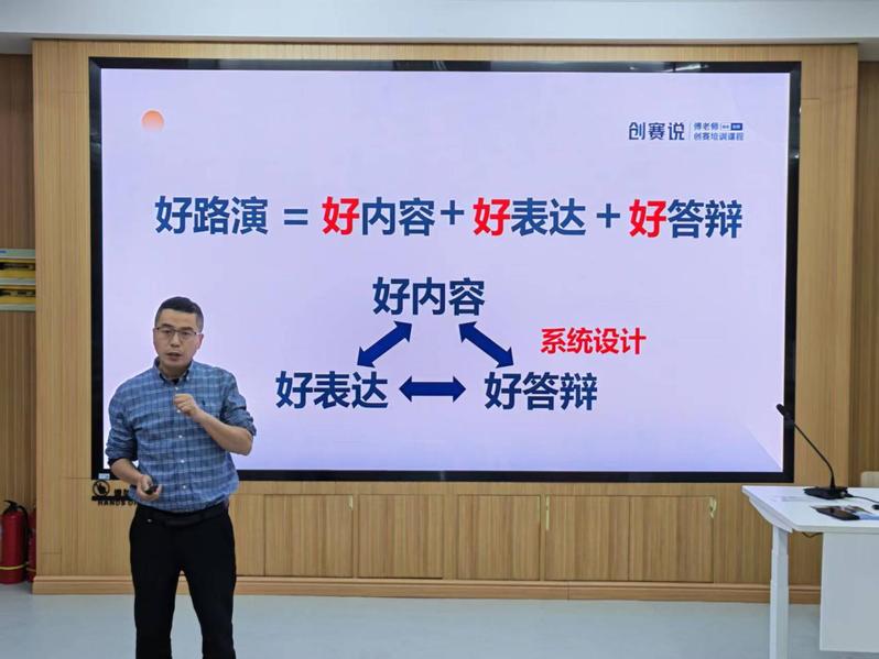讲座中,傅许坚围绕优秀路演认知、项目路演设计、路演 PPT 制作技巧及创赛问答答辩准备等核心内容系统讲解,明确“好路演”核心要素,从顶层设计等方面给出路演设计实操建议,解析 PPT 设计关键要点,梳理创赛路演十大常见问题及答辩技巧,提供全方位、针对性辅导。讲座设置问答互动环节,现场解答项目筹备实际问题,实现精准指导。